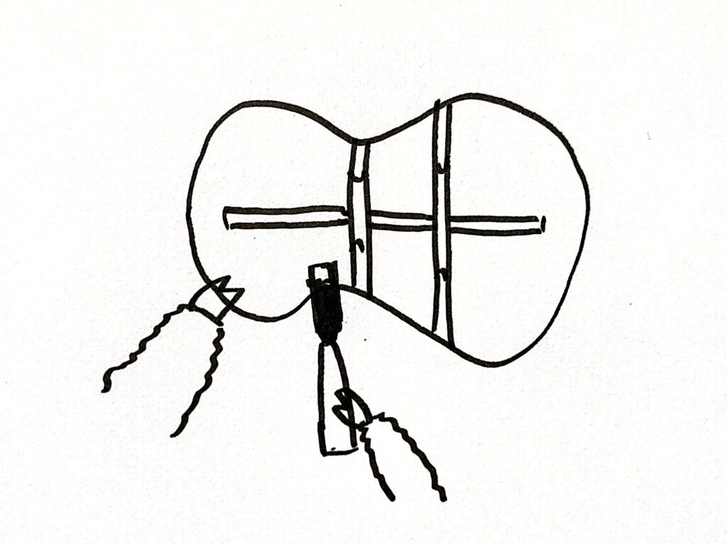 綺麗な曲線である必要はないので、普通のノコギリで何回かに分けて切ってウクレレの形に切っていくのでもオッケーです。