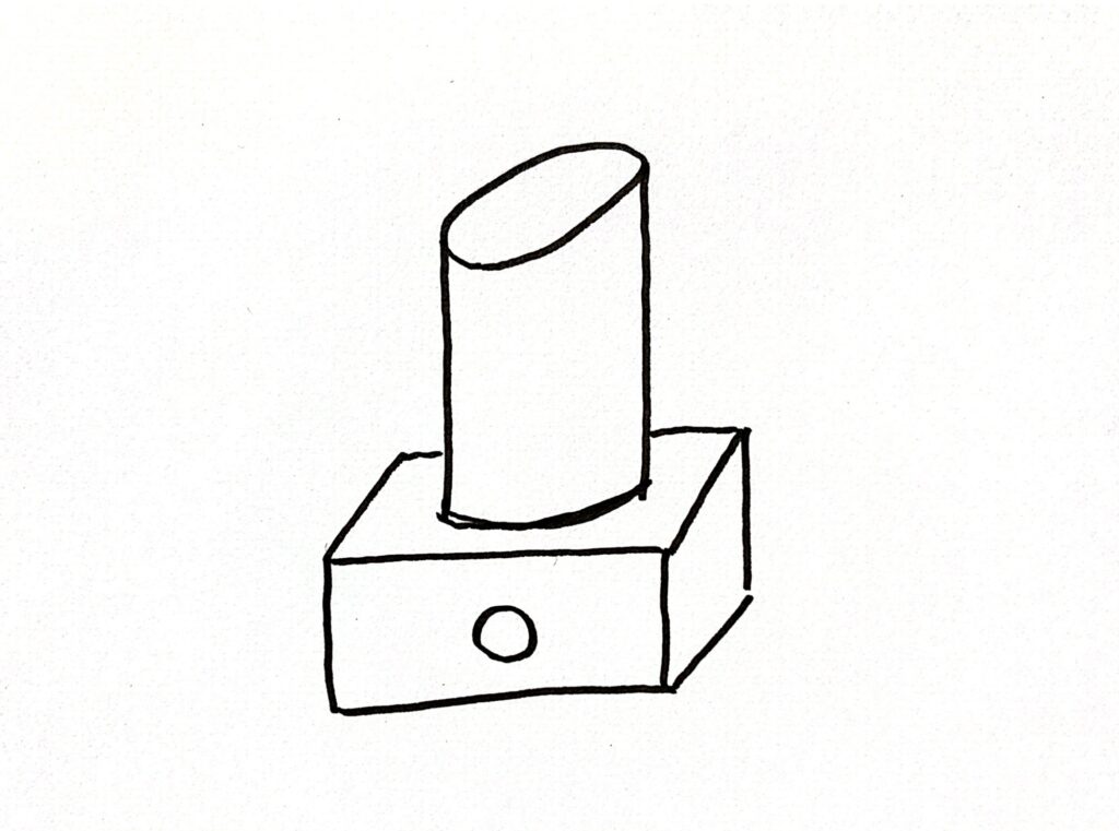 への字の木材とブロックの木材が接着できたら、鉛筆で線を引いていきます。