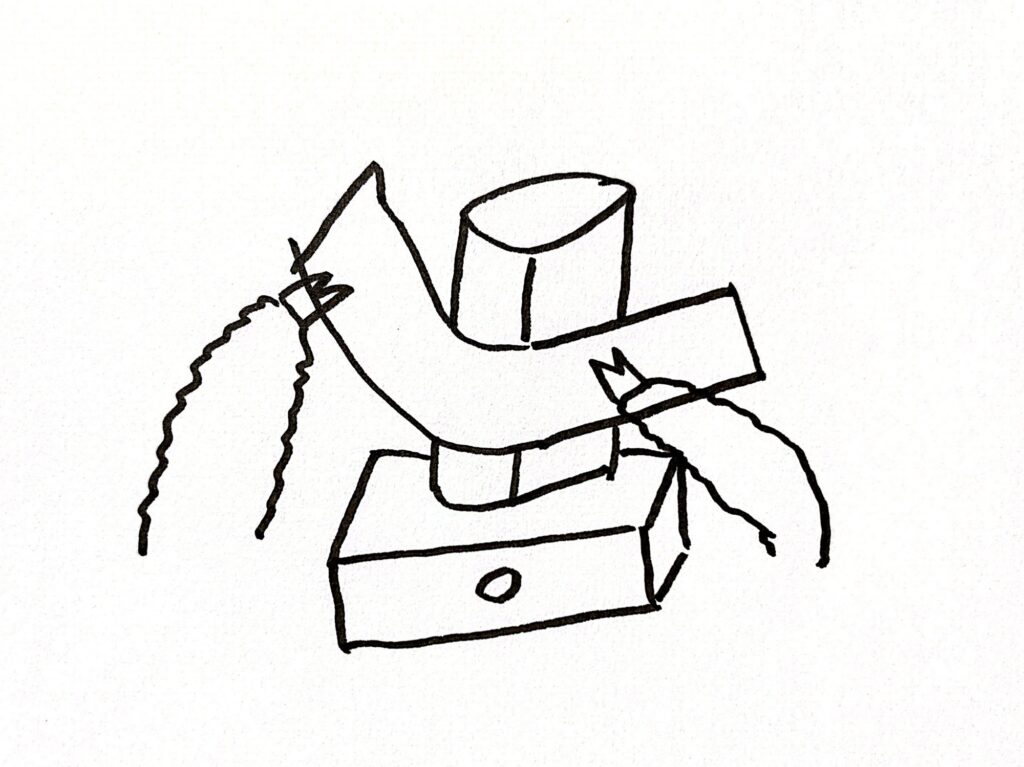 ですので、への字の木材とブロックを接着するところから始めます。